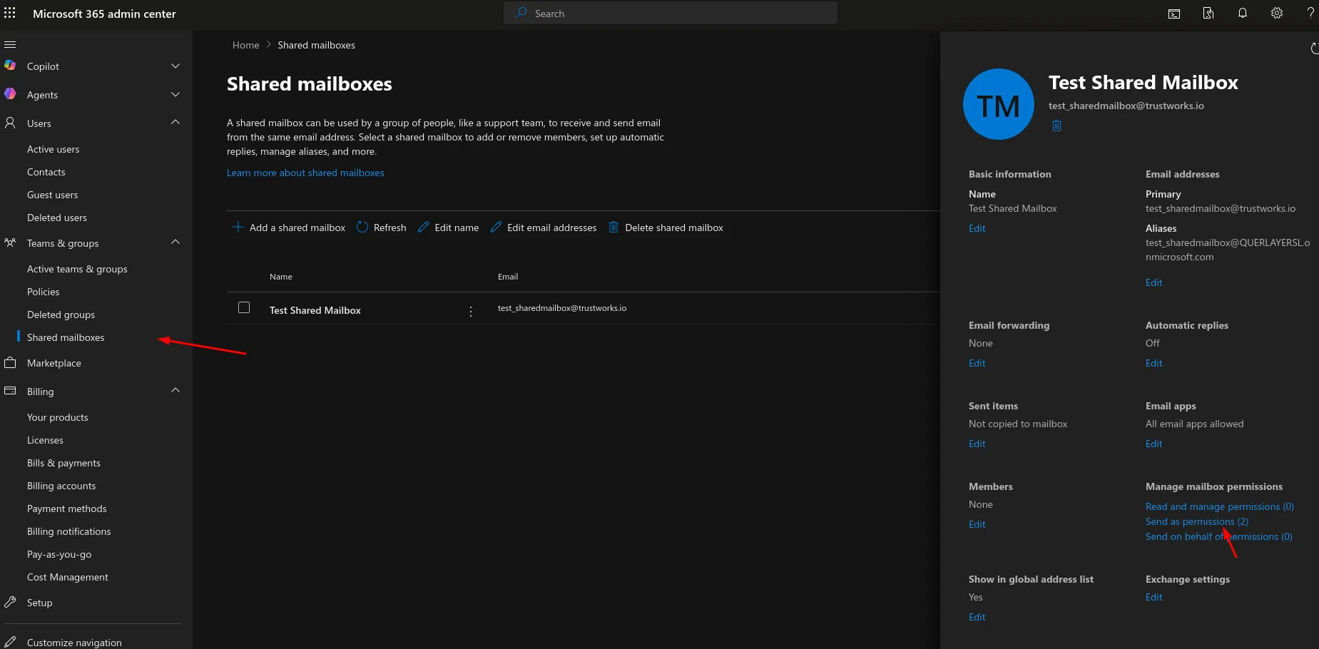 - In the Microsoft 365 admin center, go to Teams & groups → Shared mailboxes