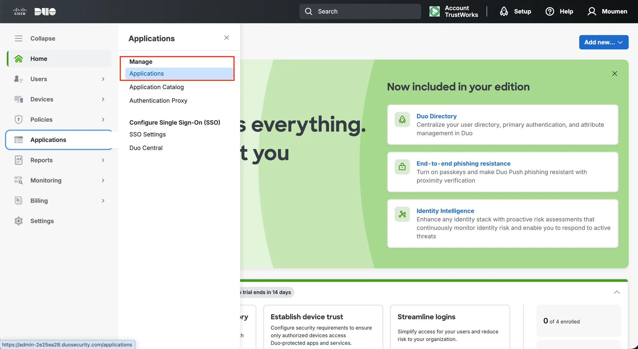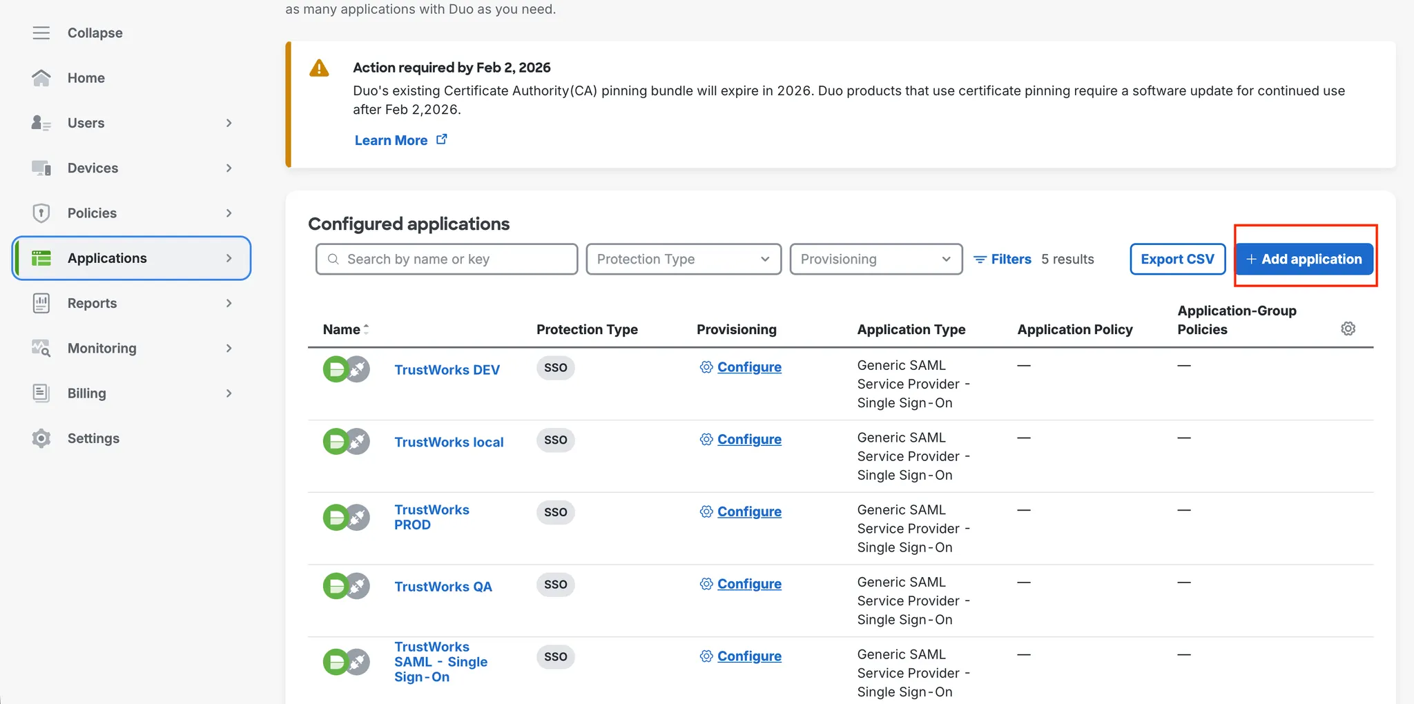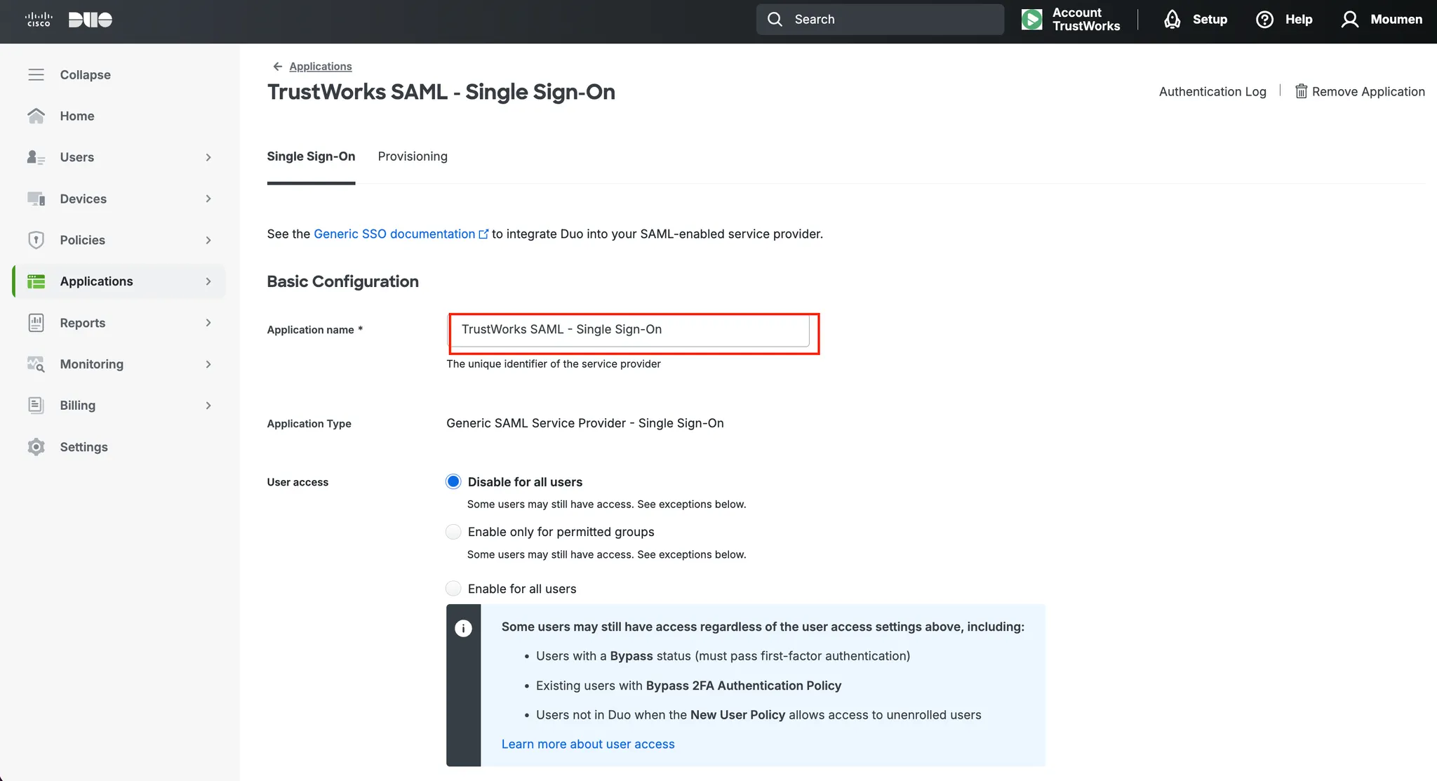 This guide walks you through how to configure Cisco Duo Single Sign On with TrustWorks.