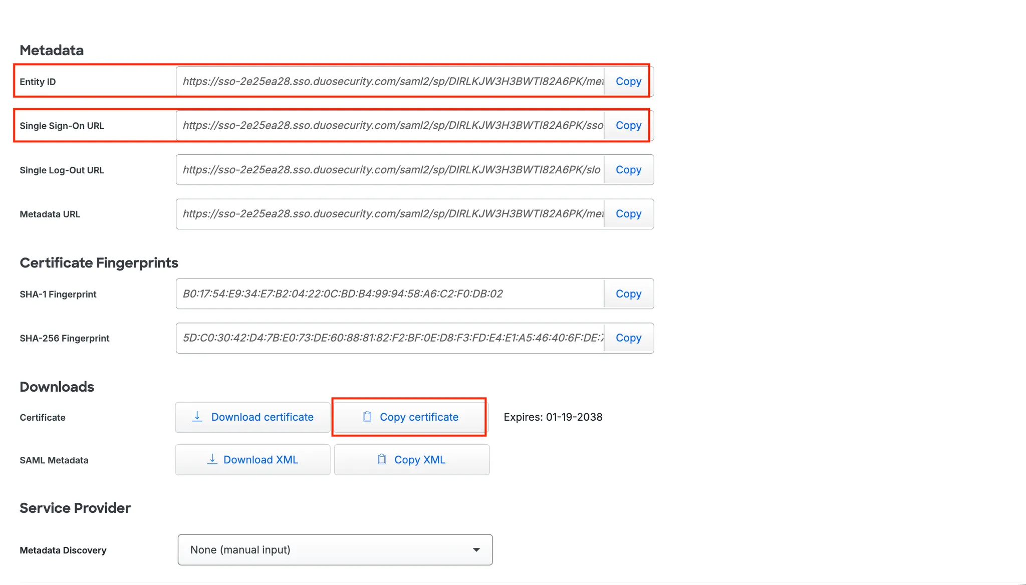 Click Copy Certificate and paste it into the certificate field in TrustWorks.