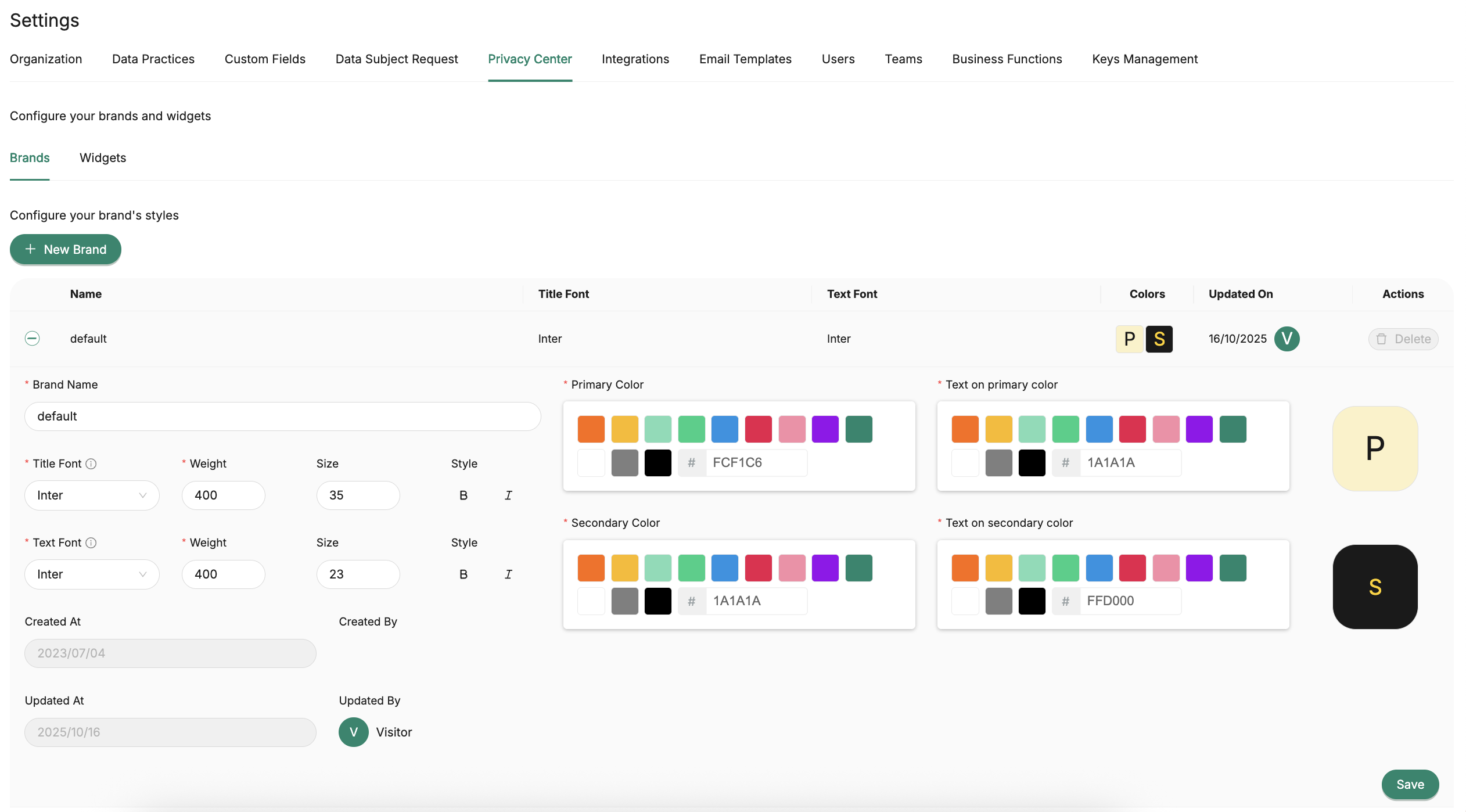 Note: Default branding also applies to email templates. Additional brand themes can be assigned to specific widgets.